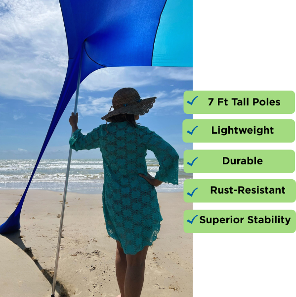Whether you need a quick, lightweight setup or need extra space with your choice of 2 or 4 poles, KAZZARY flexible design has you covered. Easily adjust to block the sun from any angle our sturdy poles adapt to your needs and add effortless stability.